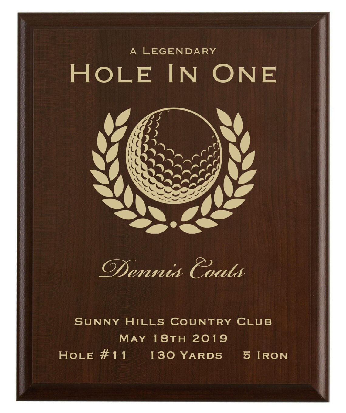 . Hole In One Personalized Plaque For that remarkable hole in one shot we can personalize that perfect occasion on high quality cedar with a plaque that shows your name, country club, date, hole number, yardage, and club used Hole in one recognition comes in many ways, sometimes depending on the situation